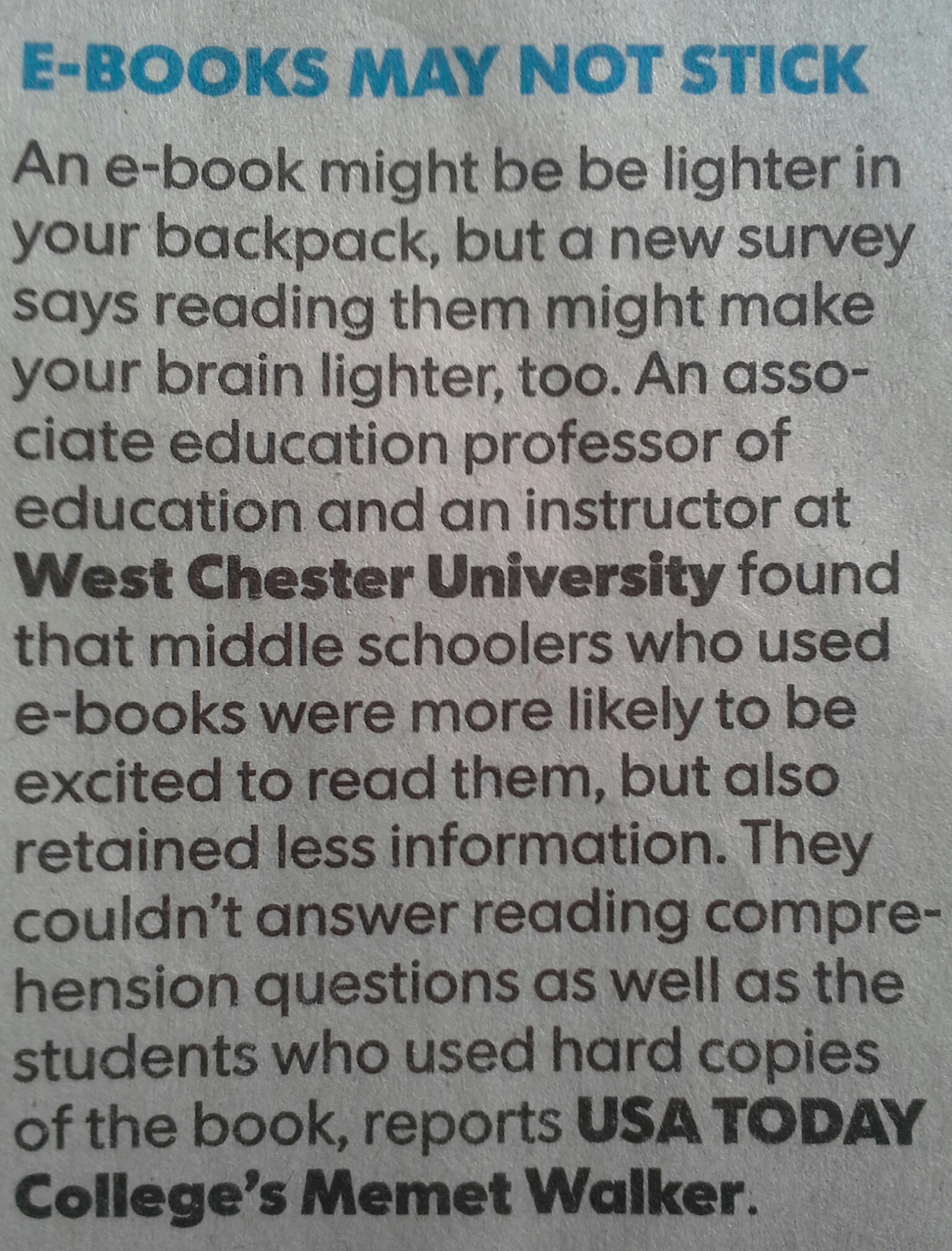 The fact that I’ve never seen coverage of a study that has found “few significant differences” may suggest a media preference for the “paper is better” story, or it may simple reflect the views and biases of my news sources.